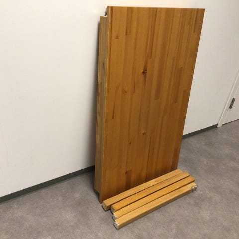 Bord i massivt tre. Kan slipes ned eller brukes som arbeidsbord