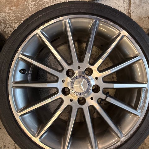 Originale hjul til MB E All Terrain. Sommerdekk Falken Azenis FK520. 245/45R19 (8J ET38). Pris 8000,-. Noe bruksspor. se bilder. Hentes i Horten. Kan vurdere GLC-felger som innbytte