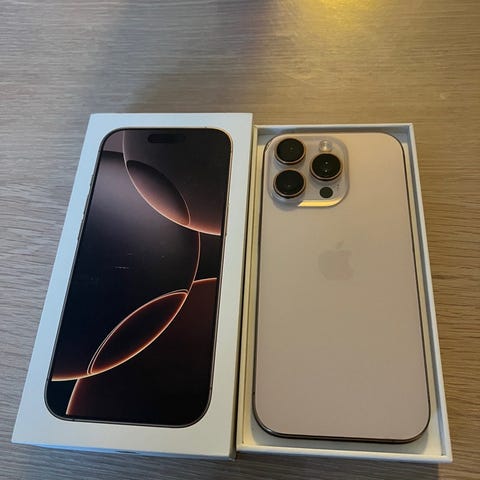 Selger en iPhone 16 pro i fargen gull.
