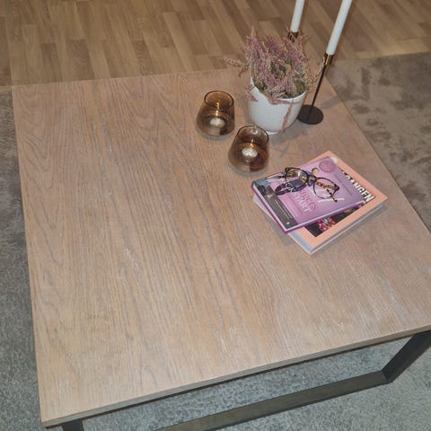 Uten ileggsplate er bordet ca. 85x85 cm.