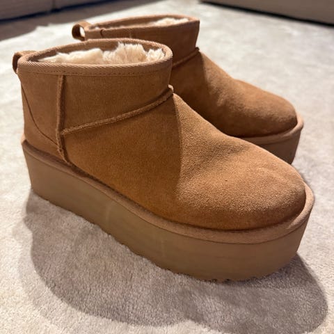 UGG støvler i størrelse 36, brun farge. Laget med mykt materiale og foret med ull for varme og komfort. Egnet for kaldt vær og utendørs bruk.