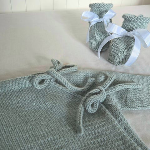 Hjemmestrikket Olives Slå Om jakke fra Knitting For Olive i str 3mnd. Strikket i merinoull. Helt ny og aldri brukt.