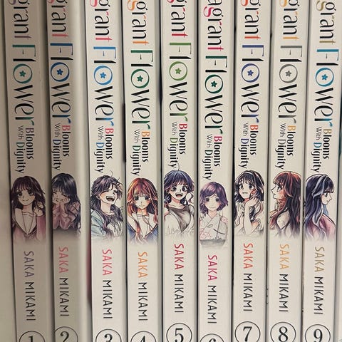 Saka Mikami Fragrant Flower Blooms with Dignity manga volum 6 og 7. Serien følger temaer om kjærlighet og personlige forhold, utgitt av Kodansha.