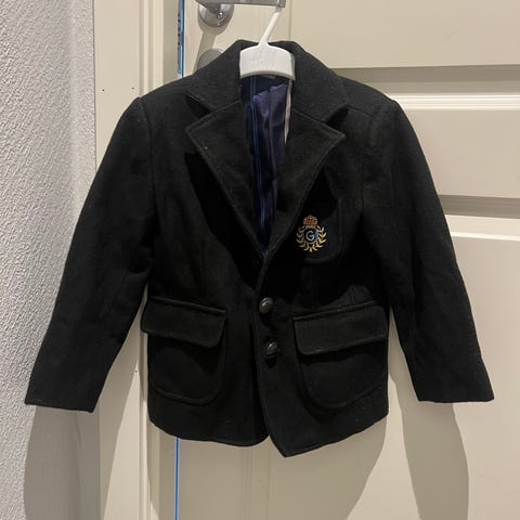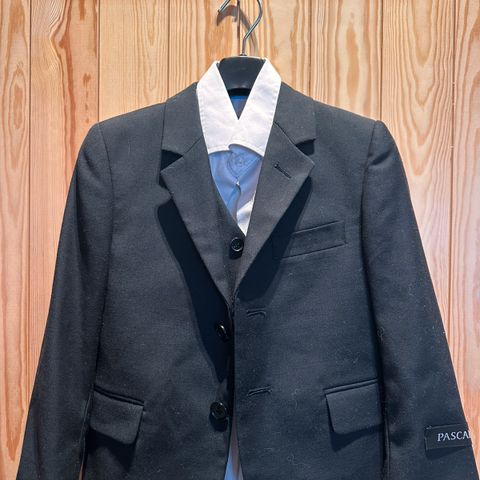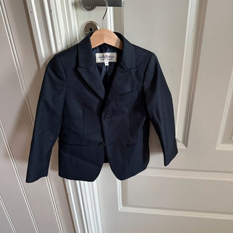 Svart dressjakke fra Zara Kids i str 4-5 år. Ingen flekker eller skader, fremstår som ny (men skrevet navn på lapp inni ). Figursydd (tailored fit), 60 % fin ull.