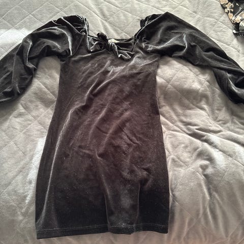 Pen kjole, ikke synlig brukt. Sort med glitter. Str 134/140.