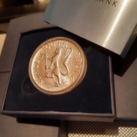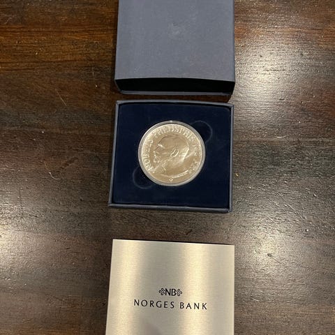 Nobelmedalje 100 år jubileum 100 kroner sølvmynt Norge