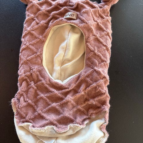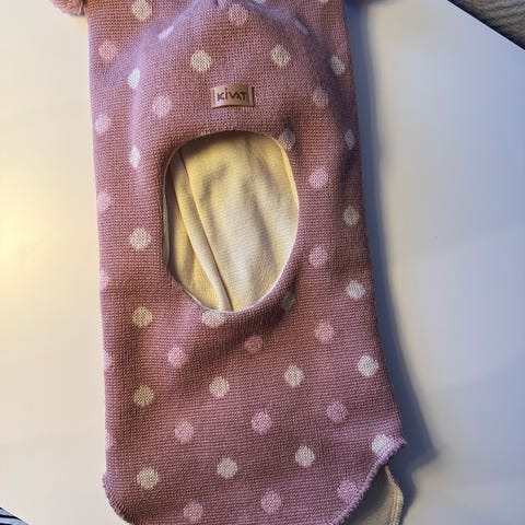 Kivat balaclava for barn i størrelse 2 (2-4 år) Fargen er rosa, og materialet er ull. Passer for jente.