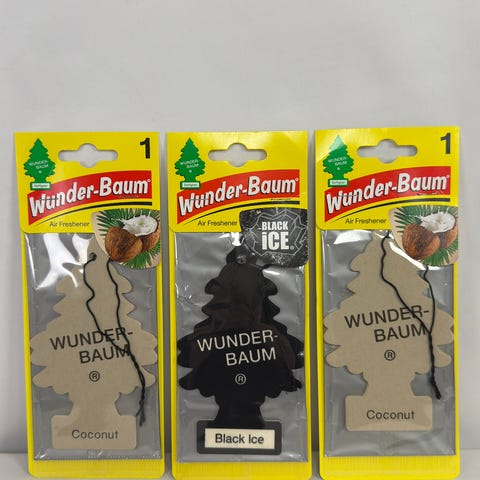 Wunder-Baum New Car bilduft med ekstra tykk og langvarig frisk duft. Produktet kommer i blå farge og er formet som et tre.