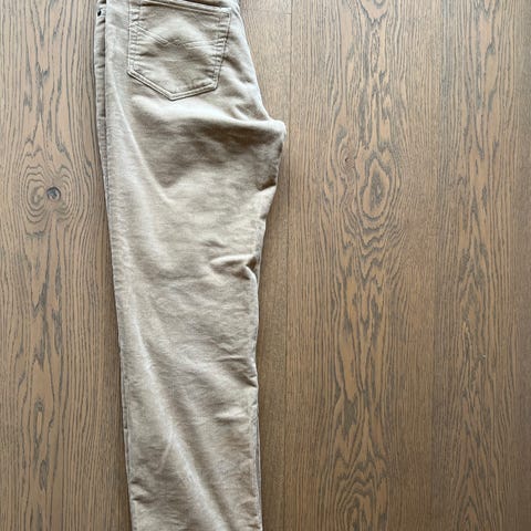 Nydelig fløyelsbukse i dyp bronsefarge. Vide, rette ben. Aldri brukt, bare prøvd noen ganger hjemme. Litt stor i størrelsen for meg. Str 38