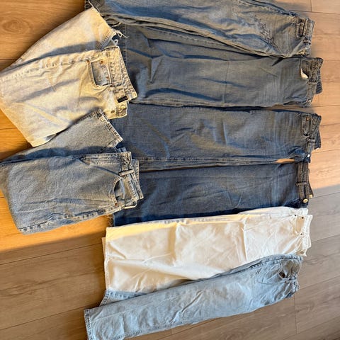 3 jeans i tre forskjellige nyanser! Nesten ikke brukt da dem er for store!
