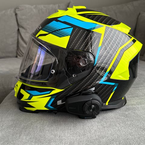 Selger denne da det ikke er bruk for den slik det først var tenkt. Denne hjelmen er helt som ny, den har ingen skader, og kun brukt for 1 kort kjøre tur som passasjer. Så like god som ny