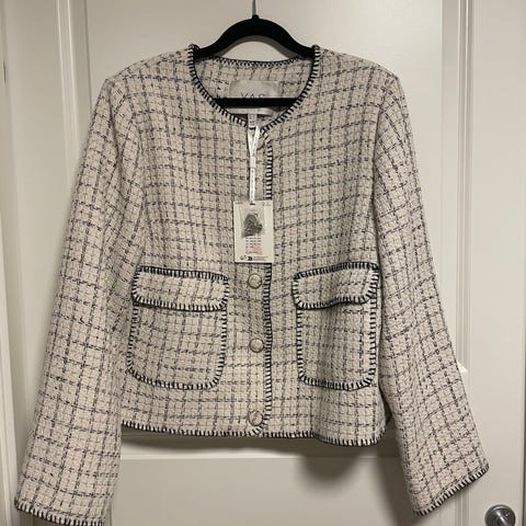 YAS Andre jakker i blå-grønn farge - vanskelig å fange opp fargen på bildet. Jakke harstørrelse L, bulse i størrelse M. Jakka er mer oversized style