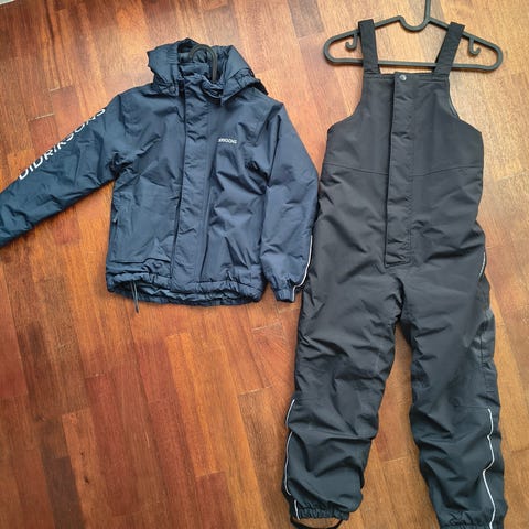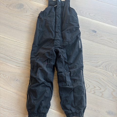 Godt brukt Didriksons vinterbukse med seler, str 120. Buksa har fått et lite hull bak, se bilde. Dette kan lett repareres og buksa kan fortsatt brukes til mange timer med lek.
