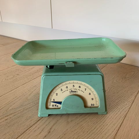 Selger en søt liten grønn kjøkkenvekt i flott stand.