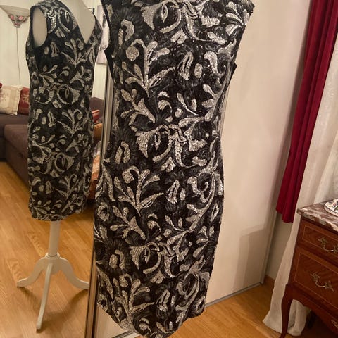 Nydelige paljettkjole med skulderputer. Ikke brukt med lappen enda på.