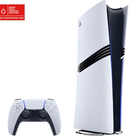 Sony PlayStation 5 Pro konsoll med original emballasje, inkludert kontroller og nødvendige kabler. Spillkonsoll for hjemmeunderholdning med avanserte funksjoner og høy ytelse.