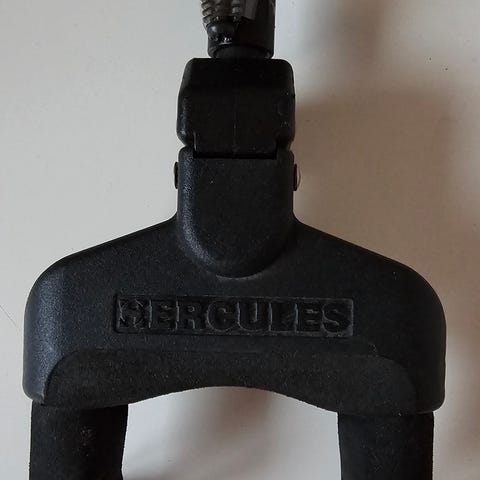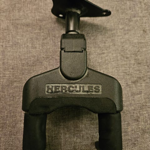 1 stk Hercules veggfester for gitar og bass. Designet for å holde gitarer sikkert på veggen. Passer for ulike typer gitarer og gir enkel plassering og montering.
