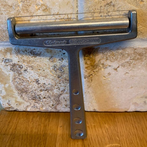 Denne håndholdte ostekutteren gjør det lett å skjære myke og halvharde oster, som gouda og emmentaler, i fine skiver. Den skarpe ståltråden gir jevne skiver, og du kan selv velge hvor tykke de skal være ved å vippe kutteren. Håndtaket er avrundet og ligger godt i hånden, noe som gjør den enkel og rask å bruke.