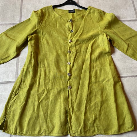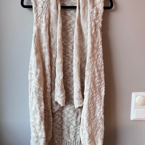 Lang vest i lin fra danske merket MILIEU. God kvalitet. Beige/kaffelatte. Str M. Veldig elastisk strikket.