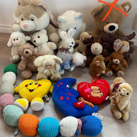 Selger diverse bamser og babyleker. Selges for 50 kr stk, pakkepris kan avtales. Alt utenom "boken" med speil er tilnærmet ubrukt.