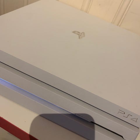 Sony PlayStation 4 spillkonsoll. Svart farge. Inkluderer en DualShock 4 kontroller. Spillkonsollen er designet for hjemmeunderholdning og spill.