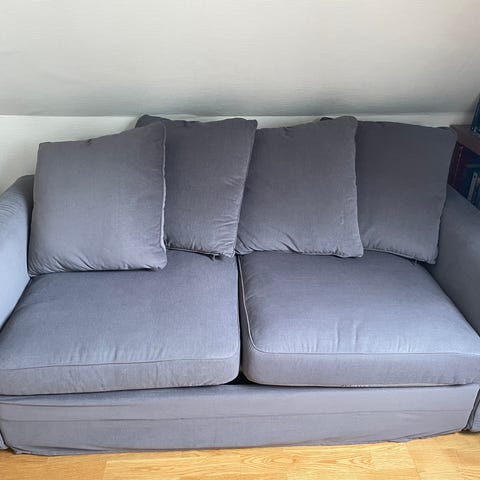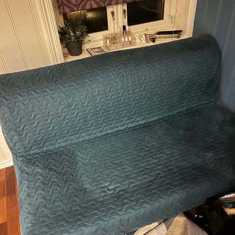 Sofaen er meget fast, så vi har brukt overmadrass når den er slått ut som seng.