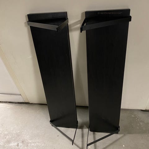 Tre stilrene og lekre hyller for vegg selges på grunn av flytting. Hyllene er hvitmalte på innsiden og har en lys eikefarget utside, som gir et moderne og tidløst uttrykk.