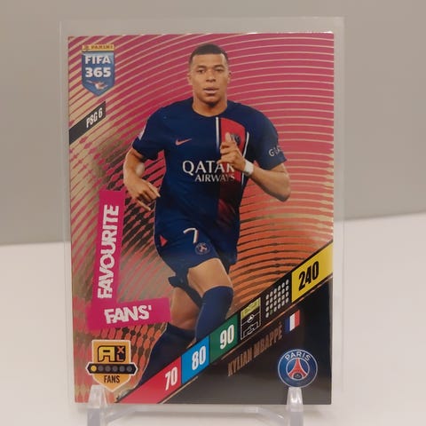 Nr 1: Dette er et Panini Adrenalyn XL FIFA 365 2024 samlekort med Kylian Mbappé.