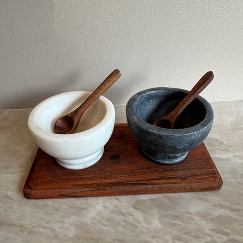 Mortel i hvit marmor. Perfekt til et mindre kjøkken