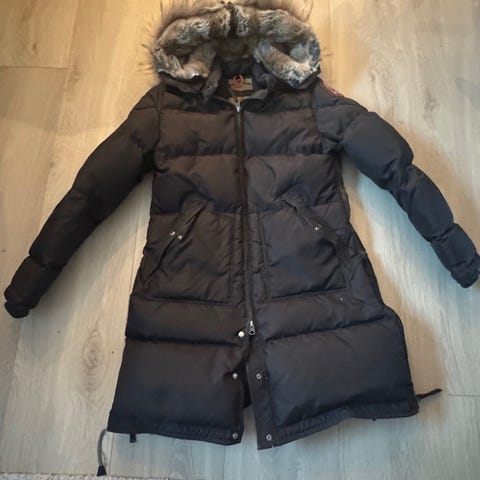 Parajumpers Masterpiece Series vinterjakke strl Large selges da den dessverre er for stor for meg. Den er pent brukt, men skinn merkene har noe slitt i seg, dette kan sees på bilde 4, men dette er ikke noe som merkes veldig til ved bruk. Den er varm og god å ha og perfekt nå som det er litt kjølig ute! Selges for 3000-, men pris kan diskuteres!