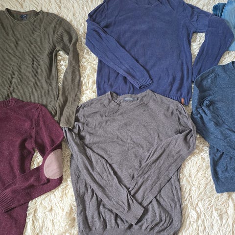 Selger litt klær som har ligget ubrukt i lang tid. Stort sett hverdagsklær, men ett sett på konkurransedress til langrenn.