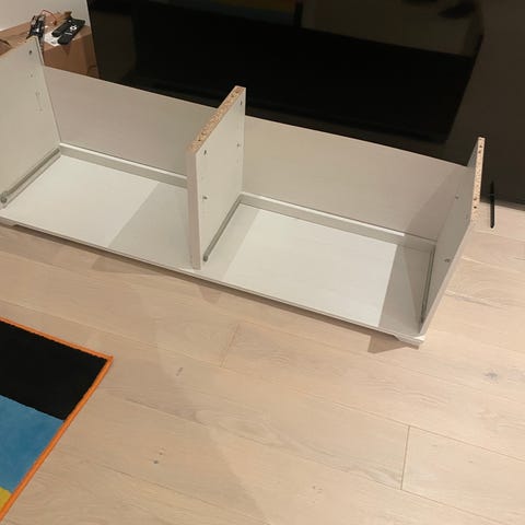 IKEA oppbevaringssystem i hvit farge. Passer fint på kontor over og rundt skrivebordet. Enkle skruer medfølger.