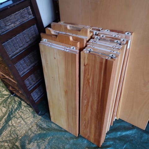 Bokhylle i furulaminat gis bort.