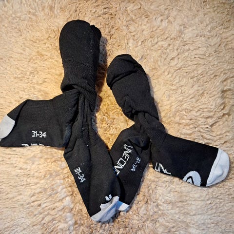 Brukt to sesonger innendørs til håndball. Skoene har snøring og en gummisåle med mønster for godt grep.