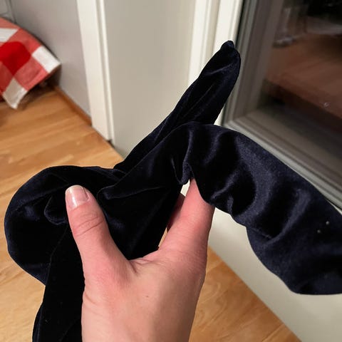 Hårbånd fra Noma i rosa fløyel med wire inni, kan formes til fin sløyfe! Metallmerket har falt av.