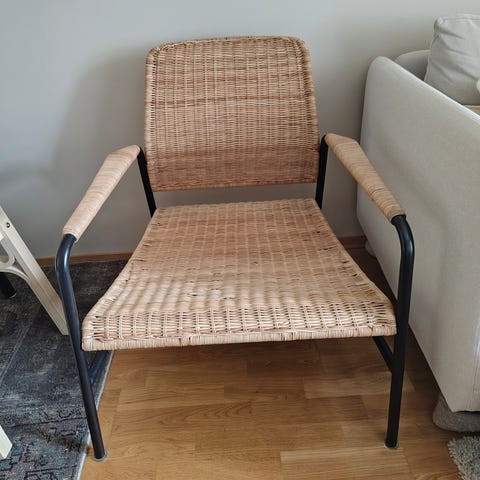 Selger en grå Lene stol fra IKEA. Stolen er god å sitte i og passer fint både i stue, lesehjørne eller som ekstra sitteplass.