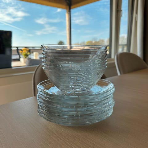 Om ønskelig, kan 4 glass følges med gratis da de alle har ett hakk i drikkekanten.