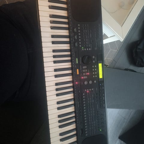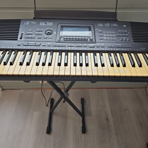 Technics KN 2000 PCM Keyboard med flere funksjoner for musikkproduksjon. Inkluderer et bredt utvalg av lyder og rytmer, kontrollknapper for justering av lydinnstillinger, og en skjerm for navigasjon. Tastaturet har standard tangenter og er egnet for ulike musikksjangre.