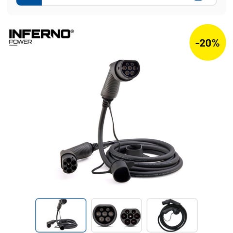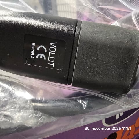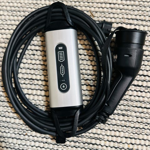 Selger bærbar elbillader (granny charger) med Type 2 kontakt til bil og Schuko (vanlig stikkontakt).