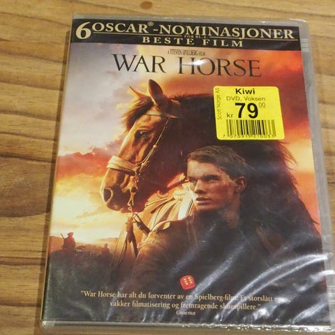 War Horse DVD med film basert på historien om en ung mann og hans hest under første verdenskrig. Inkluderer bonusfunksjoner som dokumentarer og intervjuer. Filmen er på engelsk med undertekster tilgjengelig. DVD-format. Forseglet selges 50kr +porto. Kan også sende uten fiks ferdig. Se også mine andere annonser