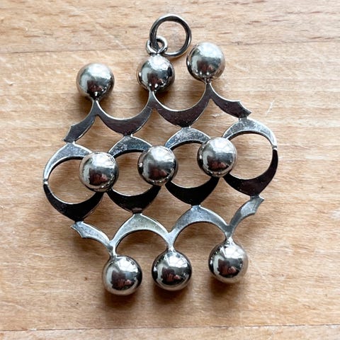 Ørepynt i sølv av Andreas Lautz, kopier av originale fra vikingtiden, ca 3x1 cm store. Hele og fine.