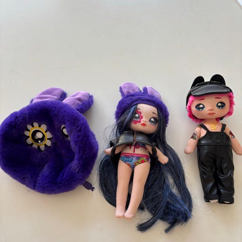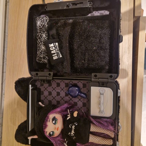 Na na na oppbevaringseske med stor dukke. Fin å oppbevare dukker og lignende.