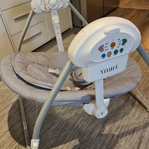 Komplett vippestol til baby med aktivitetsleke. Trekket vaskes før salg.