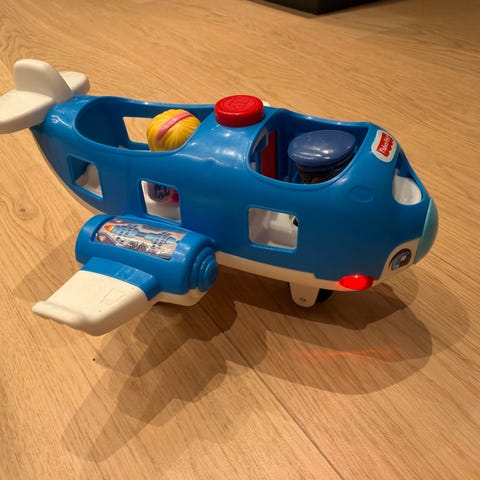 Fisher-Price Little People leketøysflyplass med tilhørende fly og figur. Laget i plast med fargerike detaljer. Passer for barn som liker å leke med transport- og flyrelaterte leker.