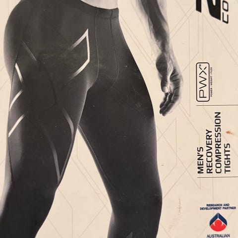 2XU PWX3 herre løpetights i størrelse S. Tightsene er laget med PWX3-materiale som gir støtte og kompresjon under løping. Fargen er svart.
