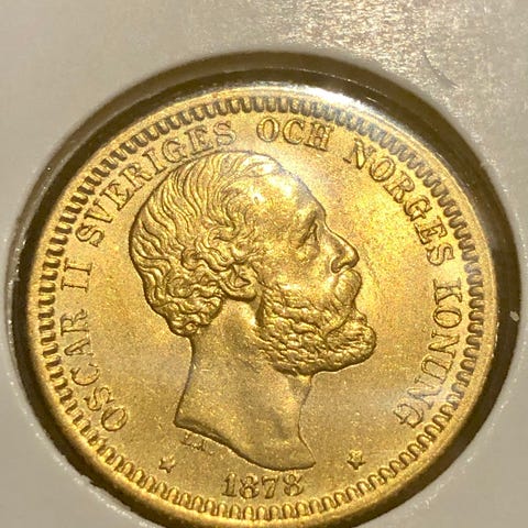 Gullmynten veier 6,45 gram 900 gull (= 5,8 gram 999 gull).