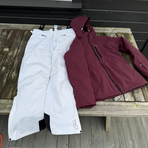 Skikkelig fin på. Lufting under armene, skikortlomme, snøskjørt.