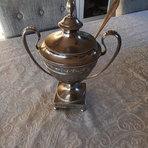 Fløte- og sukkersøtt på fat i sølvplett