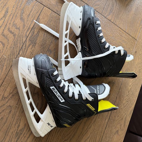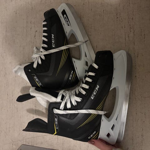 CCM ishockeyskøyter i størrelse 42. Skøytene er svarte med hvite detaljer.