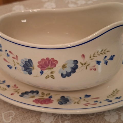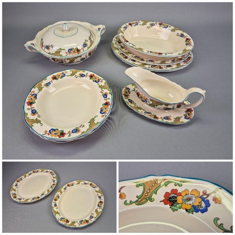 Selger diverse deler til et meget gammelt servise fra Wood & sons Woodware England (1910-20) i blåhvitt stentøy, motiv Canton. Alt er helt og pent, ingen skader eller krakeleringer. Fremstår som nær ubrukt. Kan fint kombineres med det klassiske Willow-serviset. Består av 1 stk stort serveringsfat 36x28 cm kr 450,- 1 stk mindre serveringsfat 25,5x20 cm kr 250, sausenebb